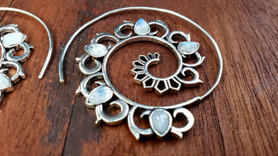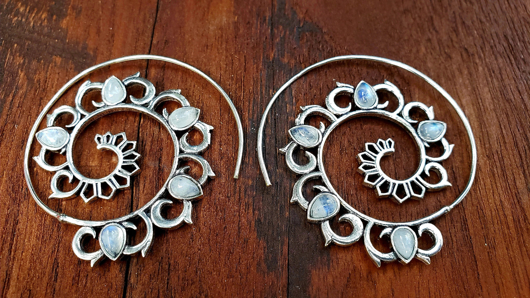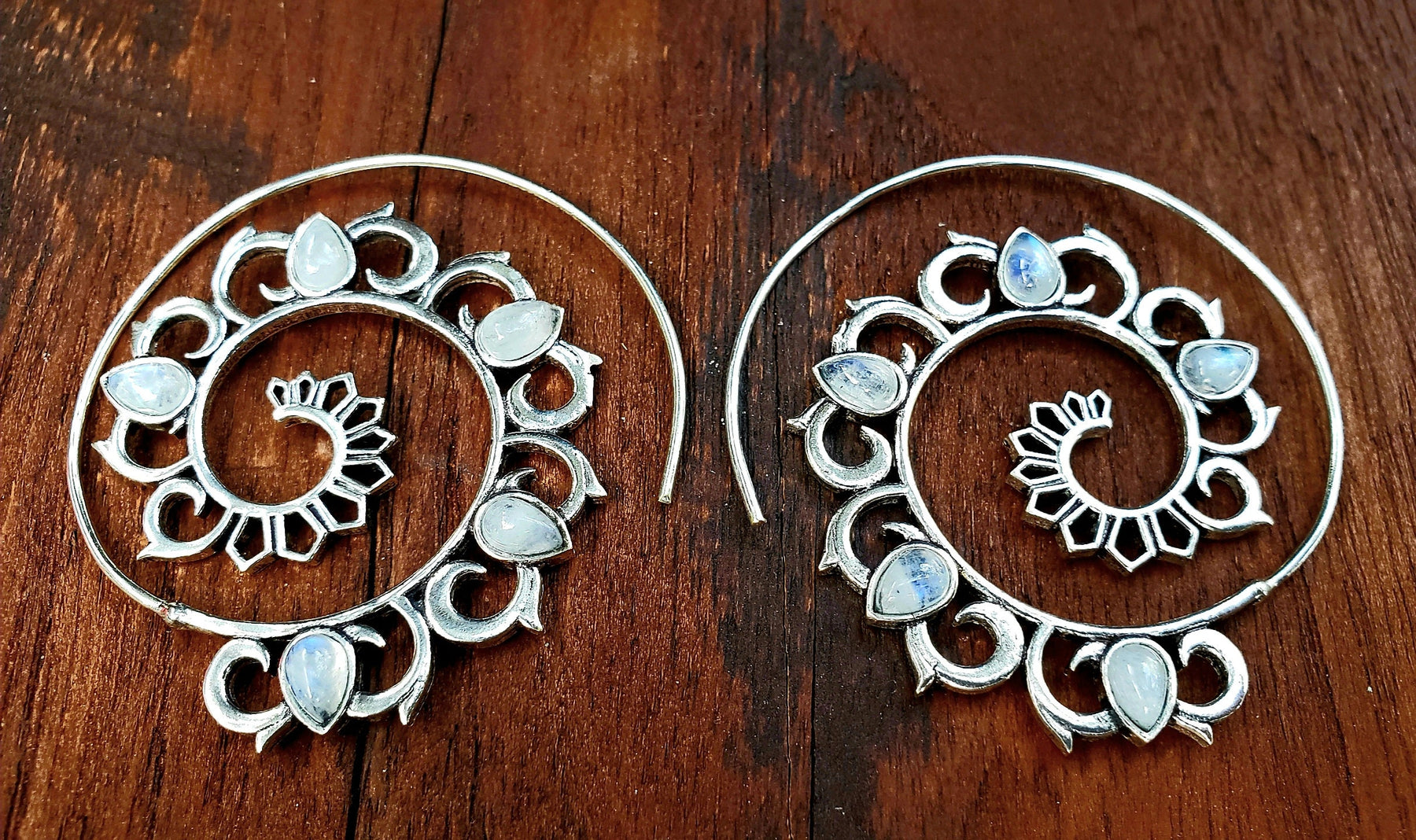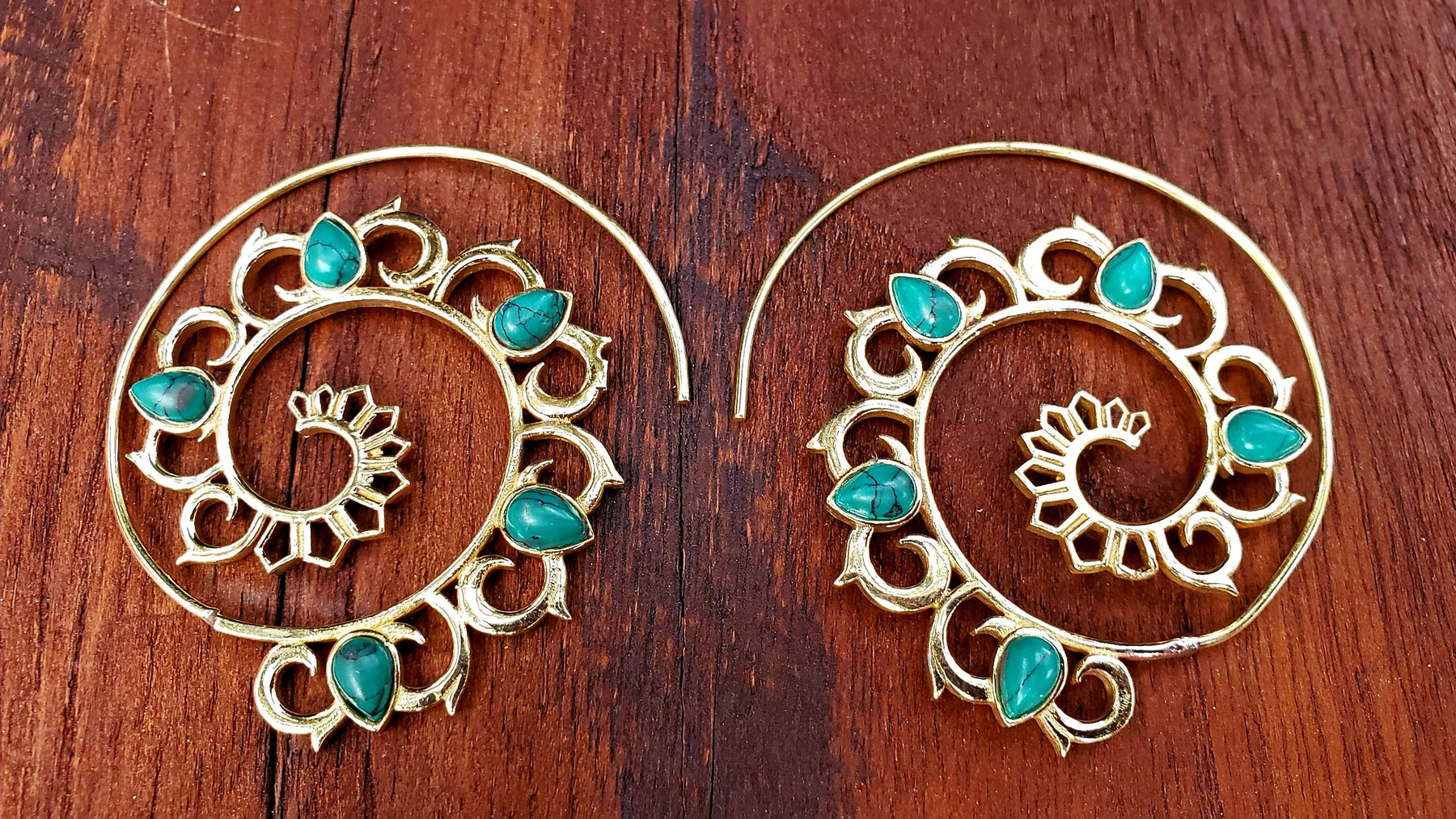 These spiral earrings loop right in a normal piercing. Hand crafted by talented Indian artists and collected by us while traveling in Rajasthan, India.