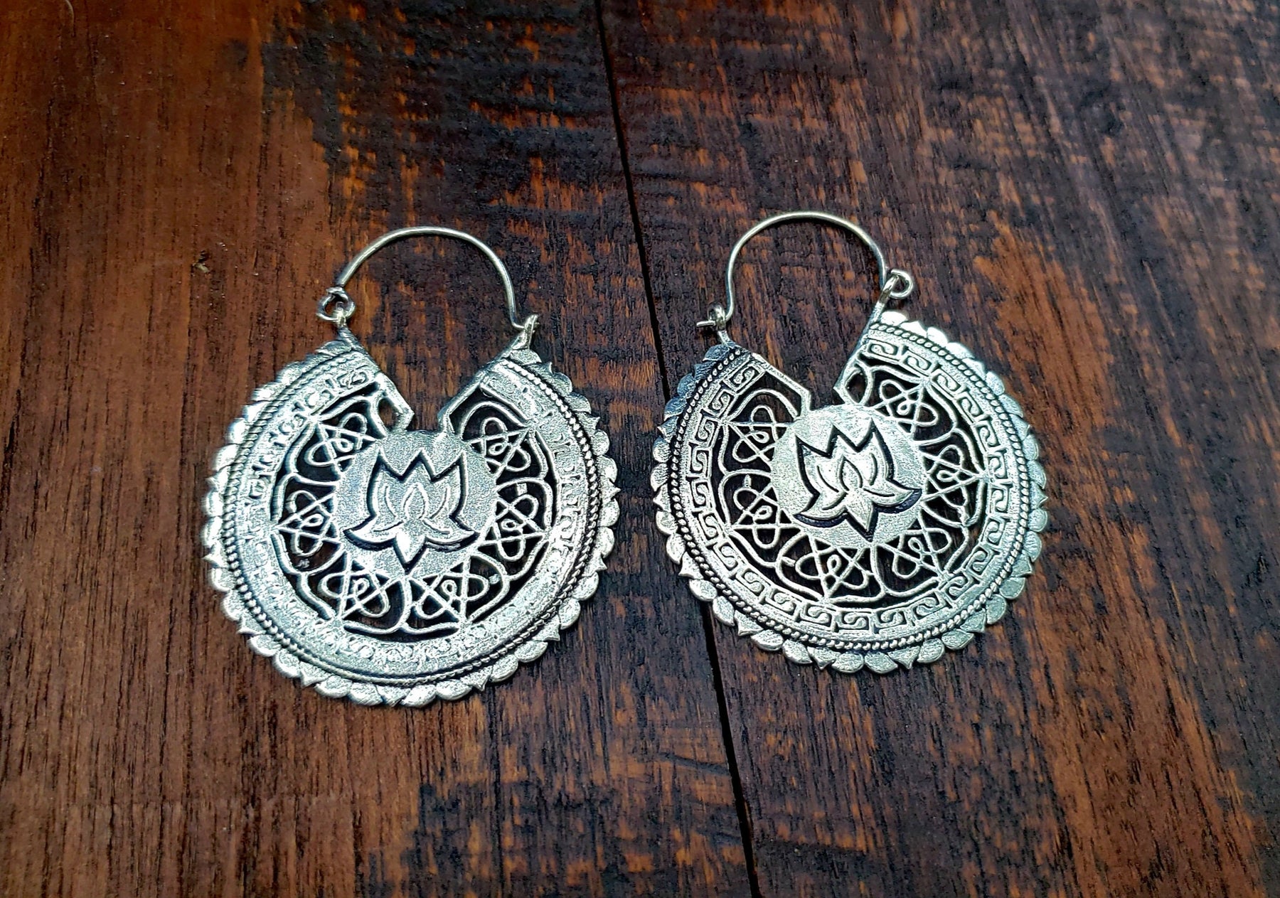 This piece was masterfully crafted by Indian artisans who are renowned for their metalworking. It is made with high quality hypoallergenic jewelry brass and three layers of silver plating. We collected this along our Journeys through India.