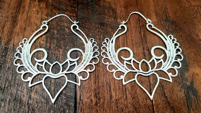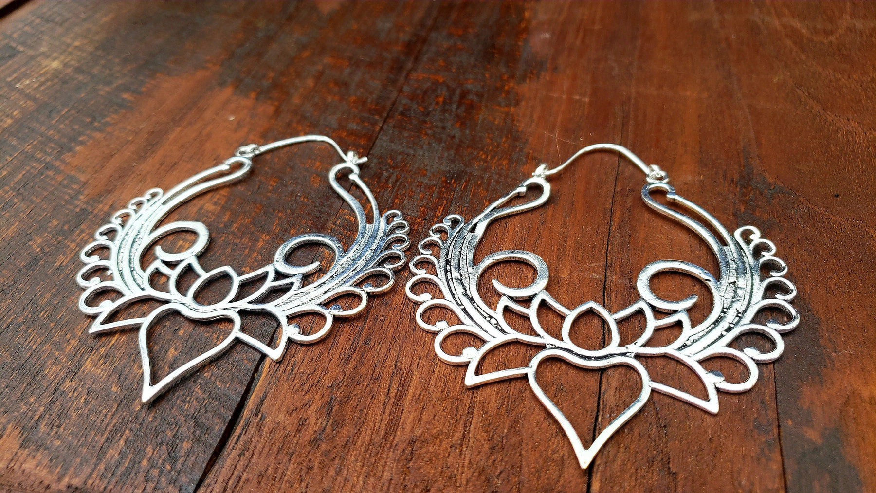 Handcrafted with high quality hypoallergenic jewelry brass with three layers of silver plating. Made by hand by skilled artisans in Rajasthan, India using traditional jewelry making techniques and collected by us while traveling there.