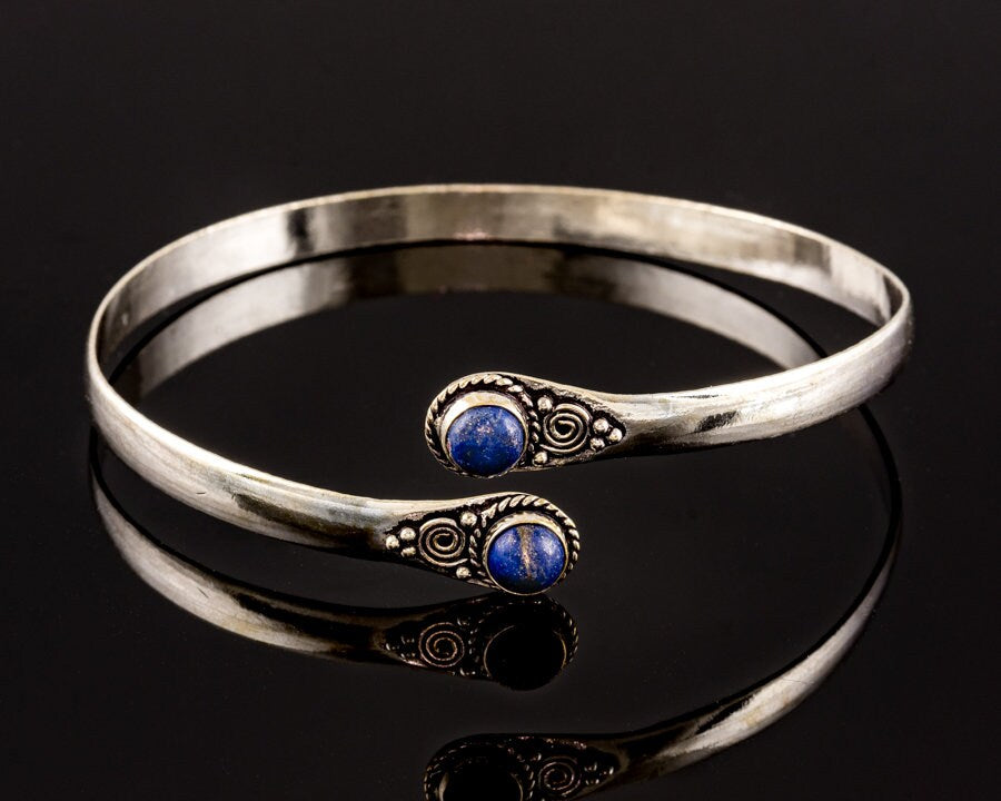 Made with triple silver plated hypoallergenic brass and genuine Lapis Lazuli gemstones, which symbolize celestial wisdom and knowledge.