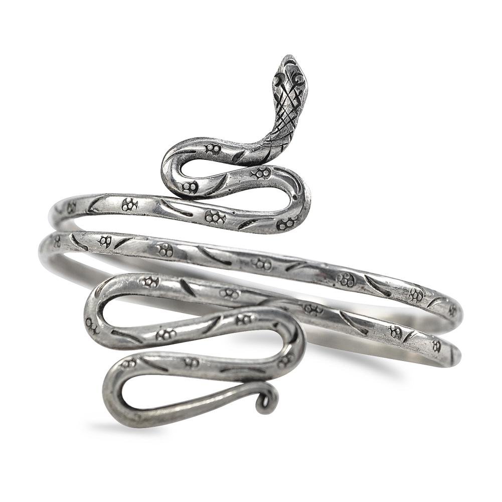 This snake bangle was hand made by the Hmong, hill tribes on the border of Laos and China. This is a contemporary Hmong jewelry piece popular with the younger generation.