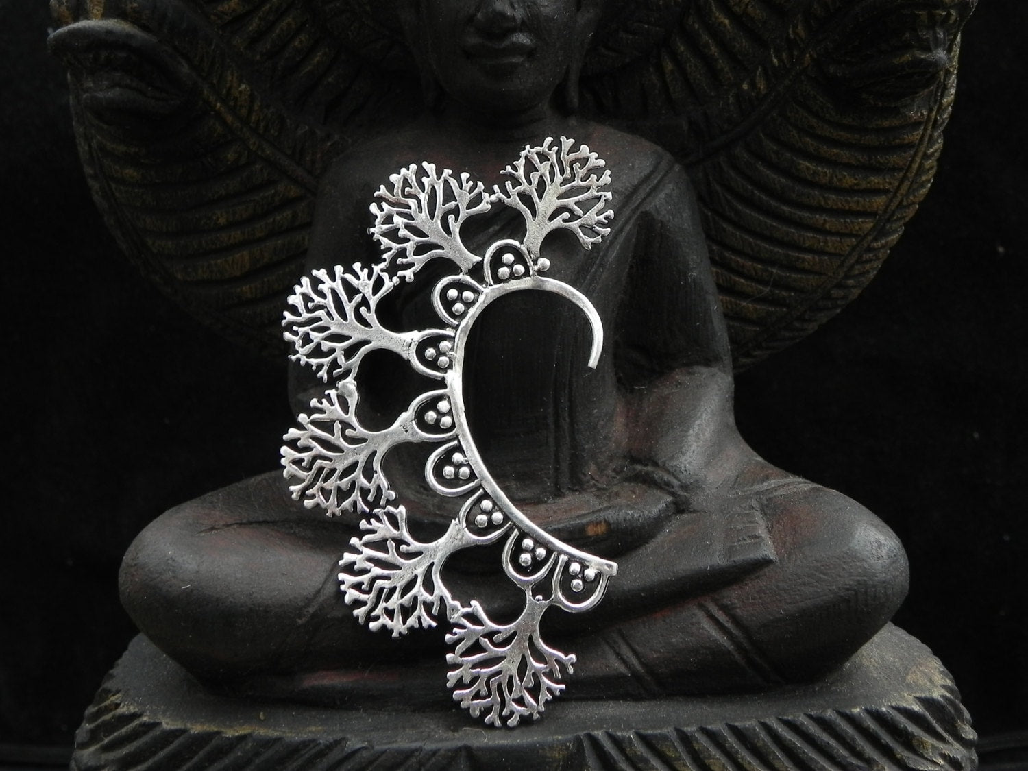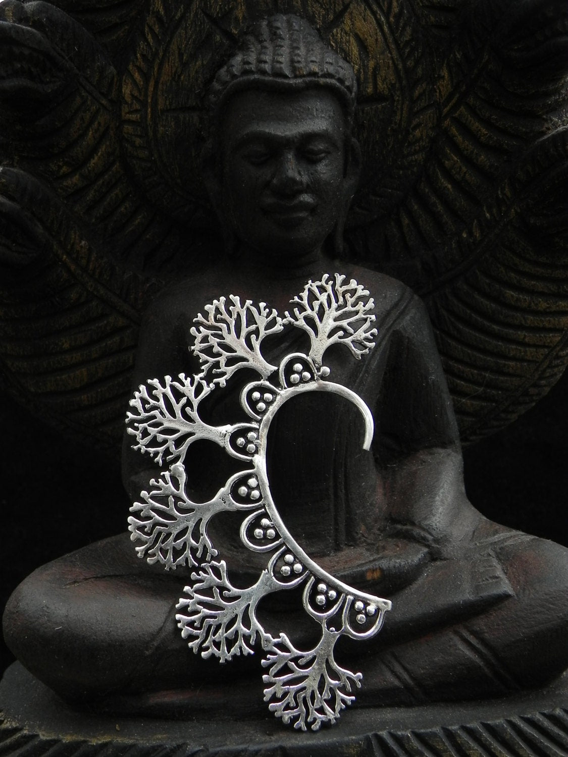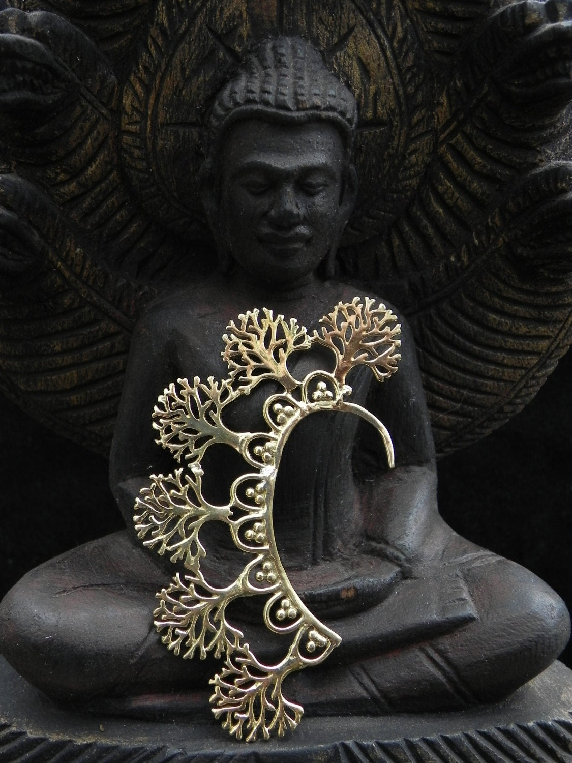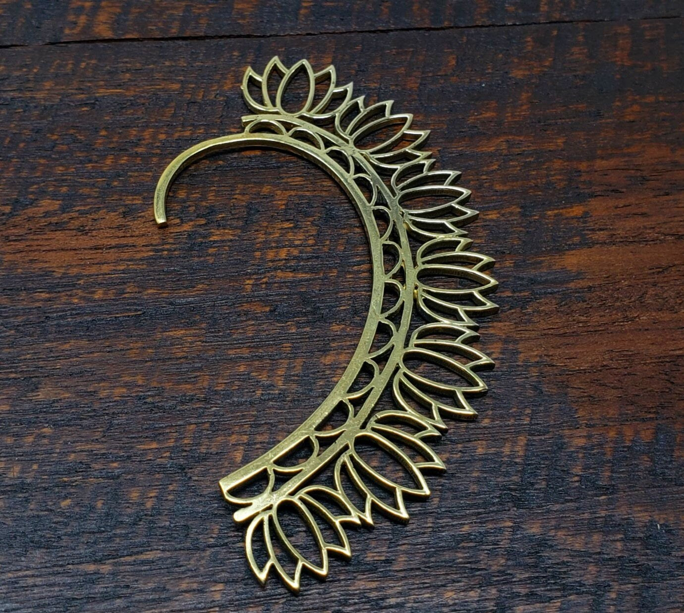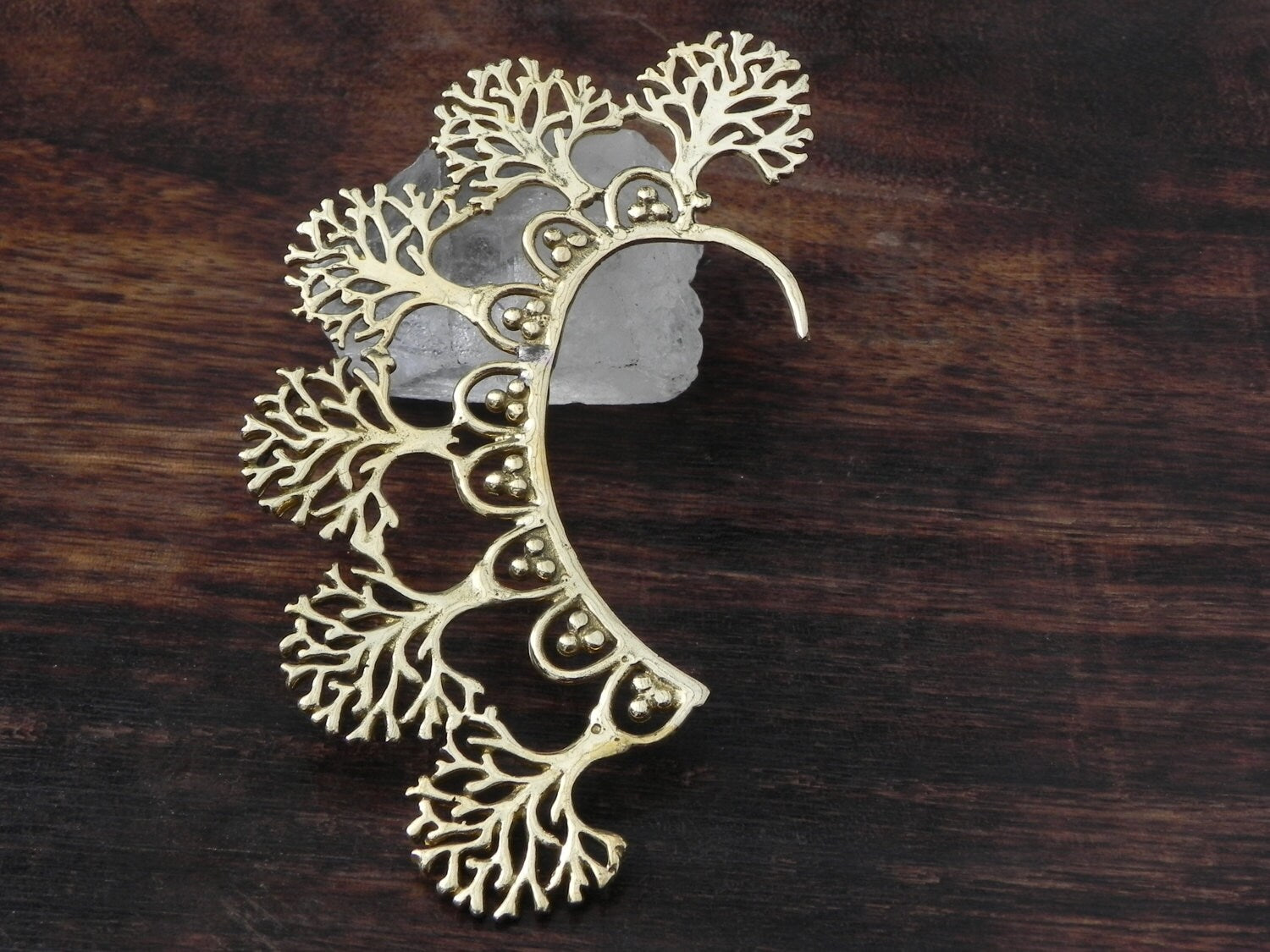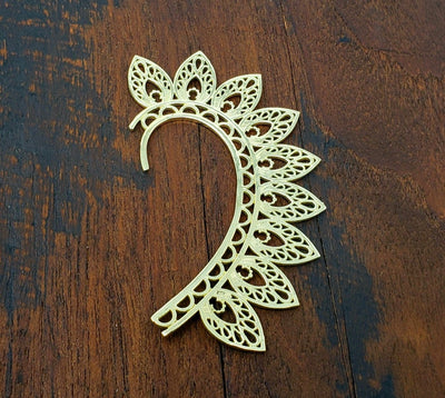This gold lace leaf ear cuff is lightweight and adjustable to fit any ear! . We found this piece while traveling across the tribal deserts in India. Indian tribal jewelry is known for being unique, detailed and high quality.