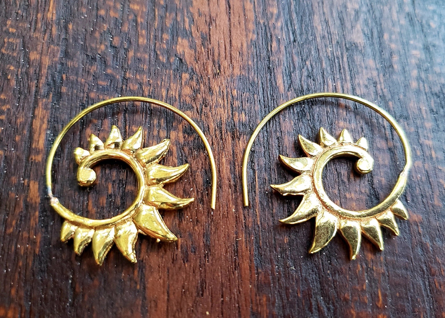 These are made with high quality jewelry brass. Thin and lightweight for daily use. They hang approximately one inch below the ear lobe.