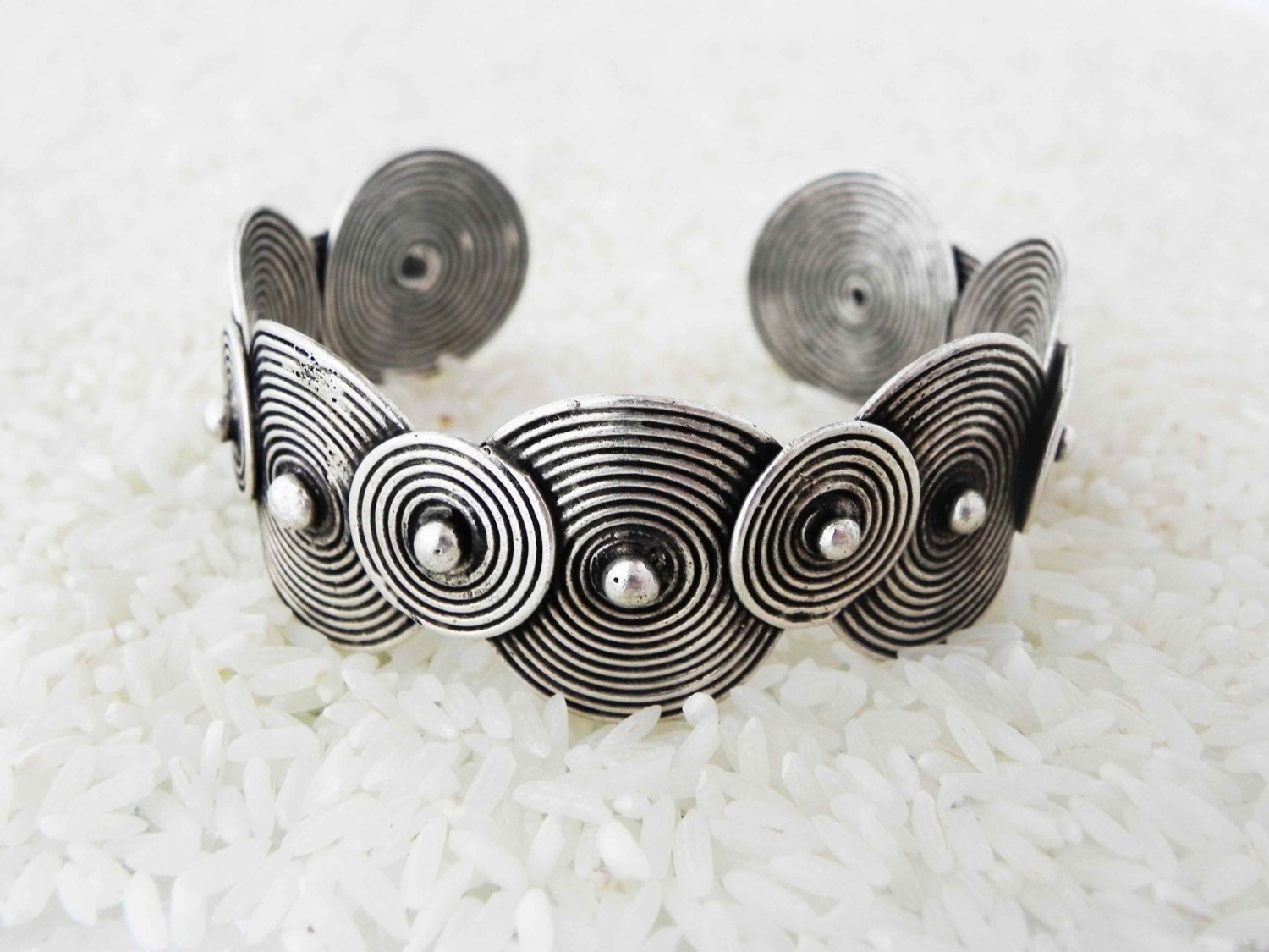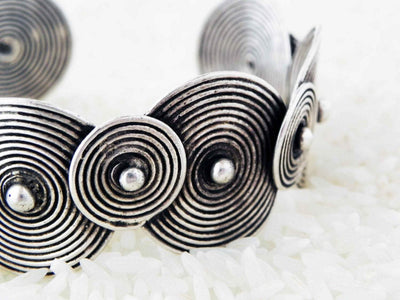 A traditional Nyiam Bracelet handmade by the Miao Hmong tribal silversmiths in the mountains along the China and Laos border. Traditionally worn for good luck and protection.
