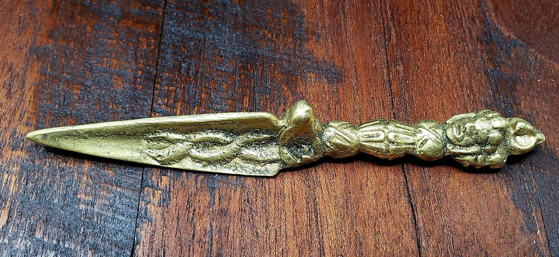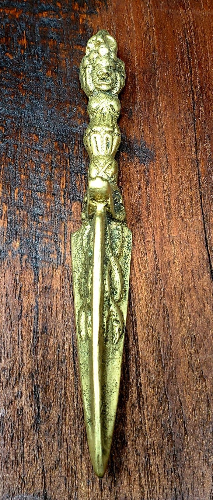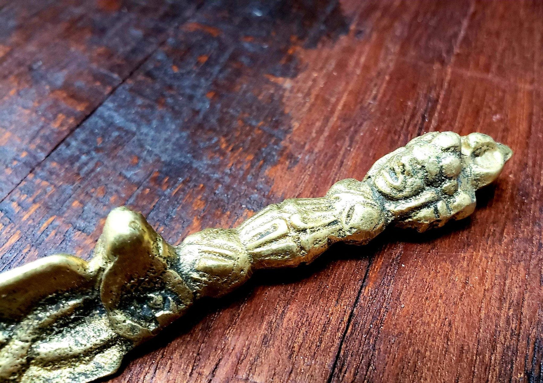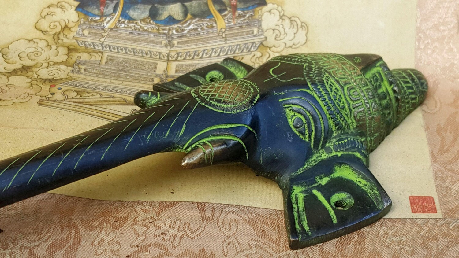 This is an original Hindu temple Ganesh lock that we collected from the ancient city of Kathmandu, Nepal. The skeleton keys are artifacts in their own right, and are unique to the lock.