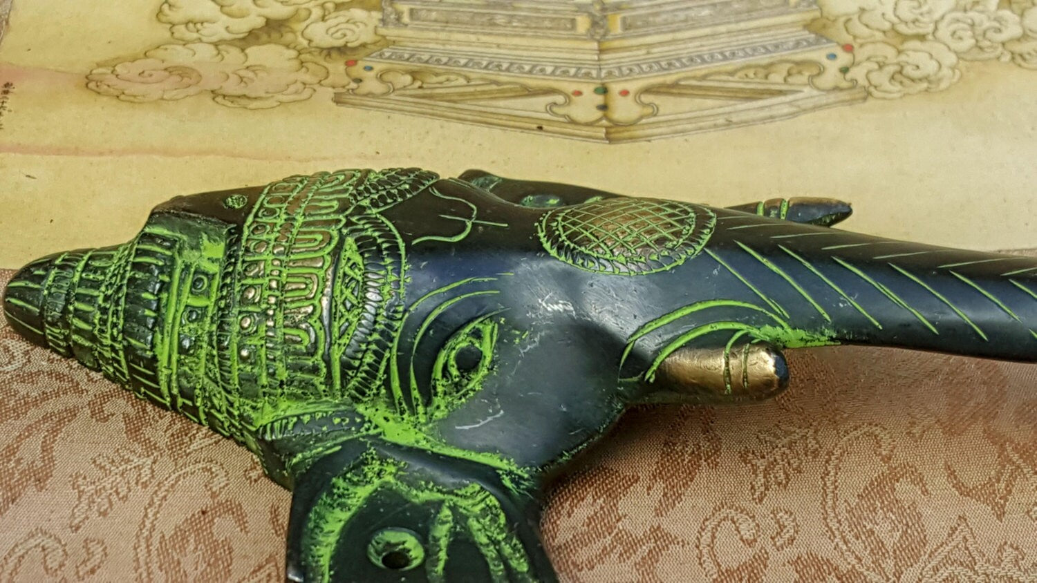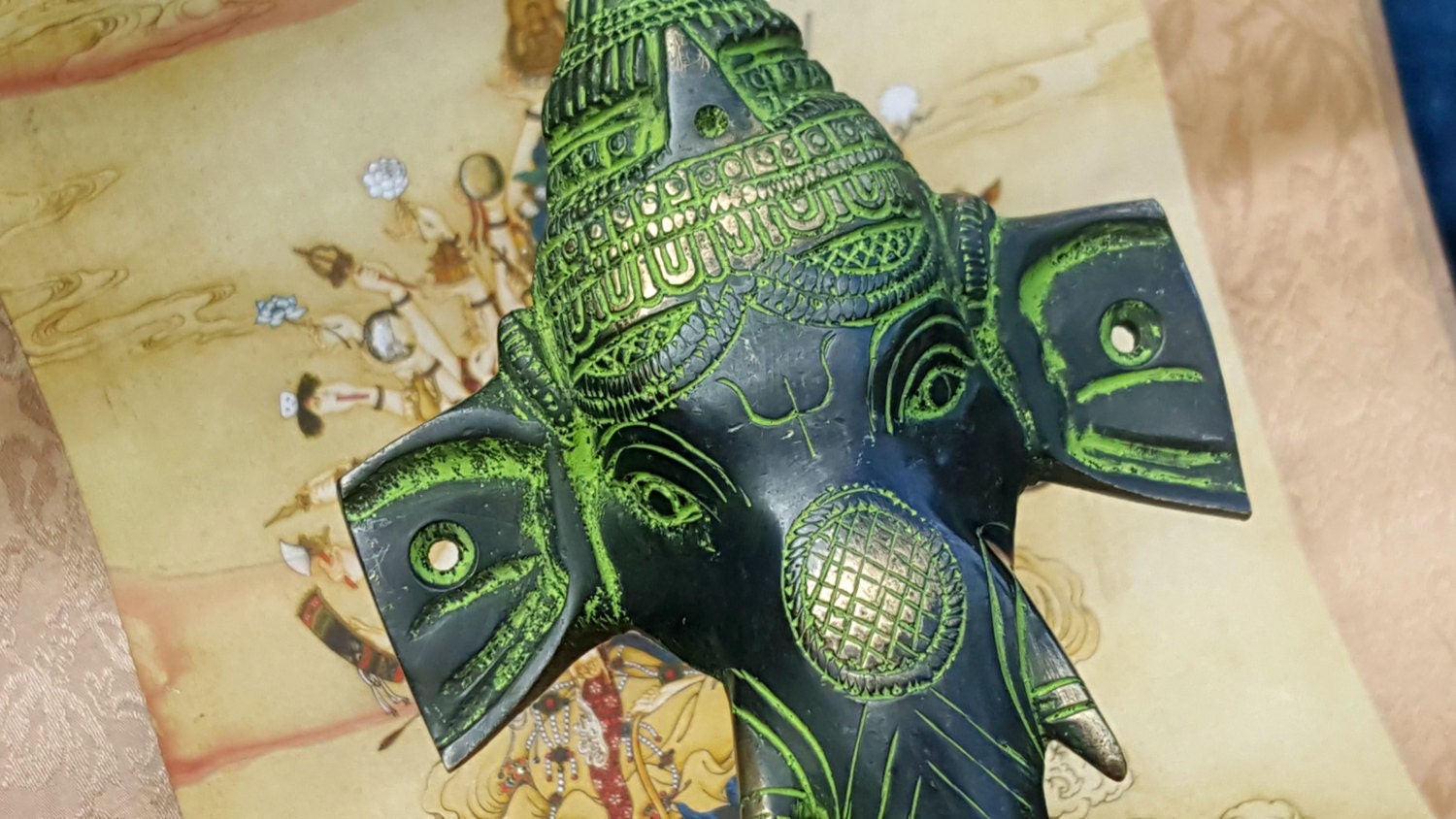Ganesh is the "remover of obstacles" and can be seen on doorways, in taxis, buses and arches. The lock is a very fitting place for his presense. He will remove the obstacle of the lock for those who are worthy, or have the key.