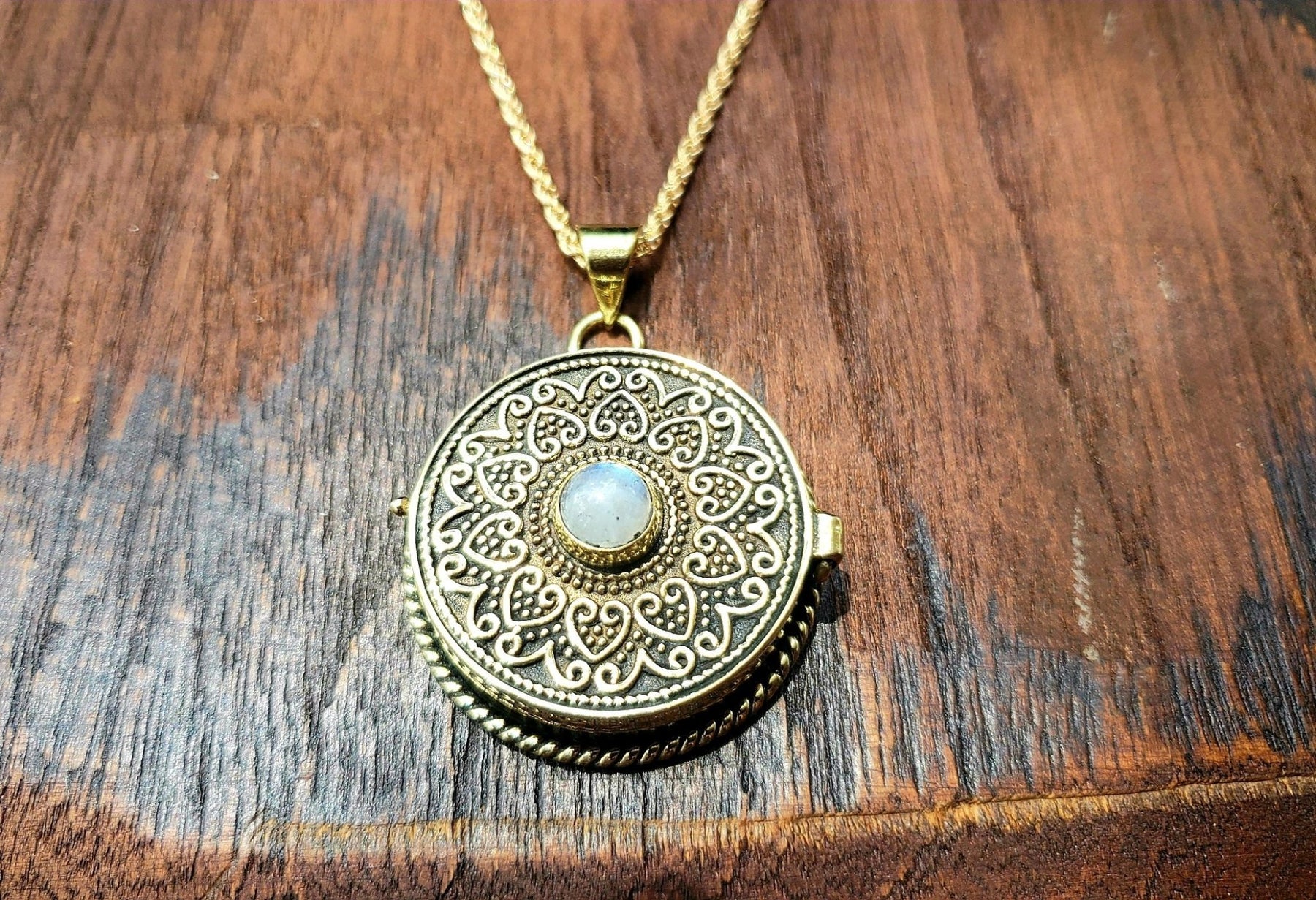 The pendant measures 3.5" long and comes with a free chain or leather cord. Made with high quality jewelry brass and silver.