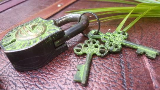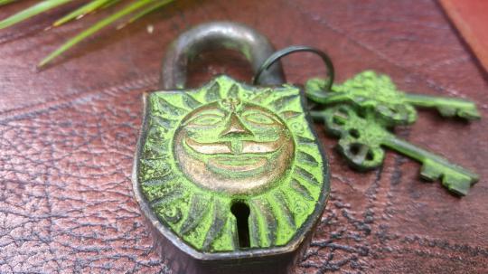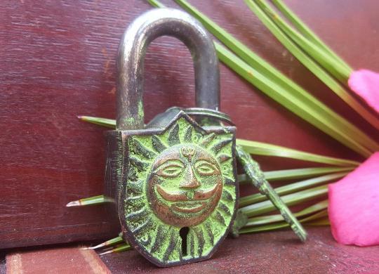 We collected this lock along our journeys through the streets of Kathmandu, where ancient artisans have been creating a wild variety of these crafts for centuries. This sun lock is completely functional, and comes with 2 decorative keys.