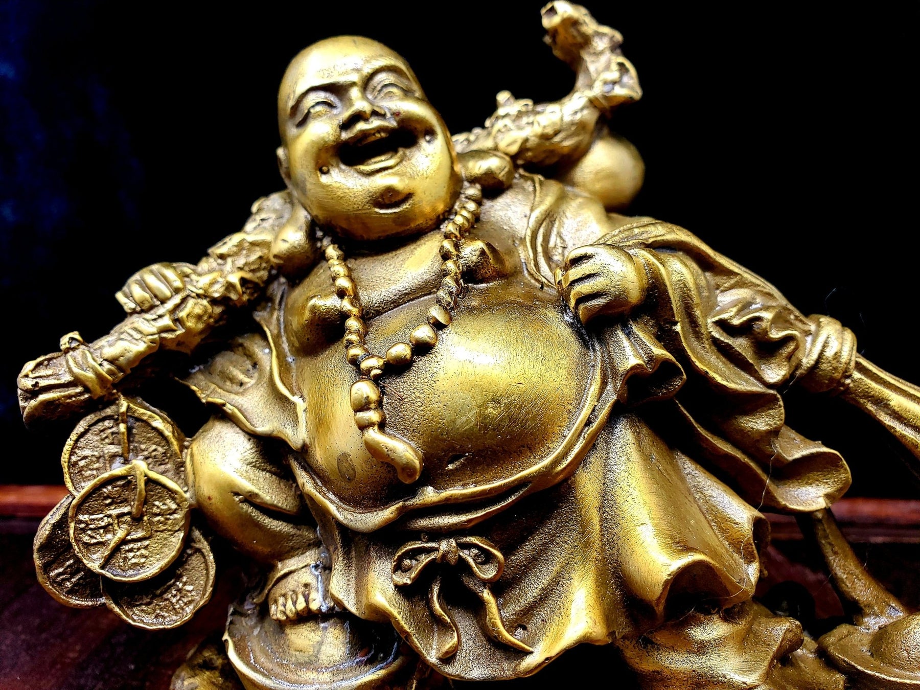 This Traveling Budai, notoriously known as the Laughing Buddha, makes a great addition to your home. This Budia encourages good fortune, health, and general well being. While commonly referred to as the 'Lucky Buddha', he is actually based on a Chinese Monk who was believed to be a reincarnation of Maitreya, who would one day become the next Buddha.
