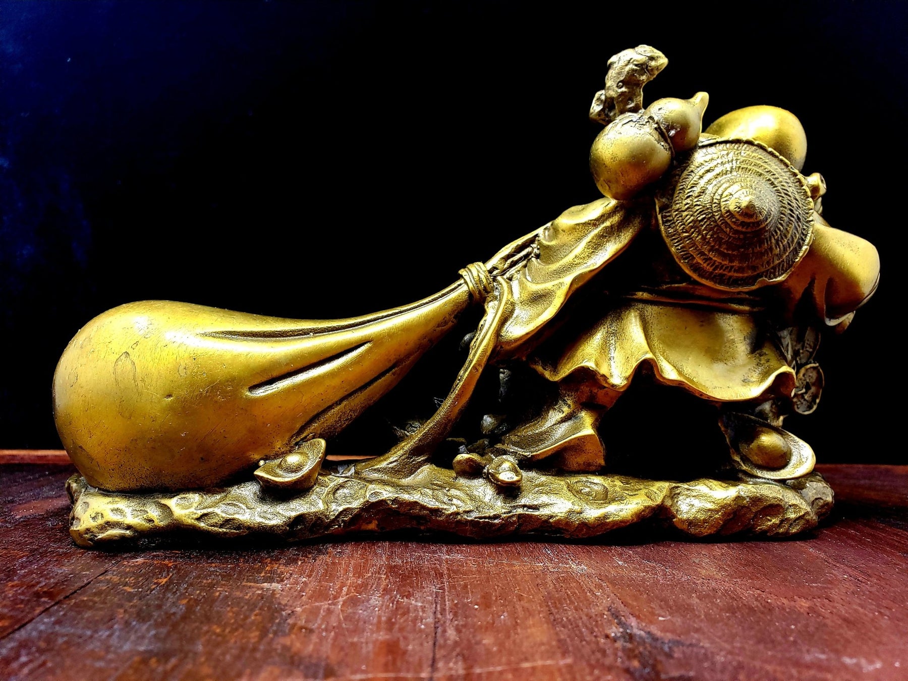 This statue is made from brass, and is 5 inches tall and 8 inches across. A beautiful addition to your collection of home decor, and well being ~~
