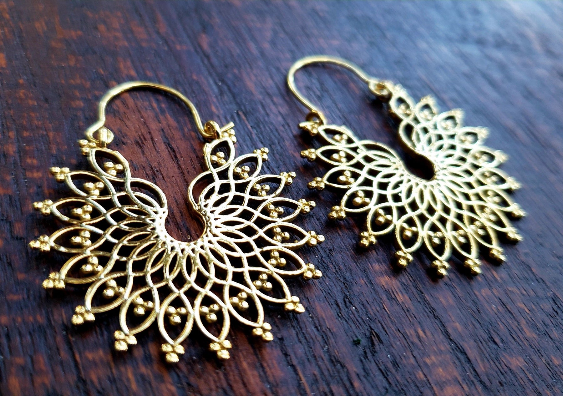 These are made with high quality jewelry brass. Thin and lightweight for daily use. They hang approximately one inch below the ear lobe.