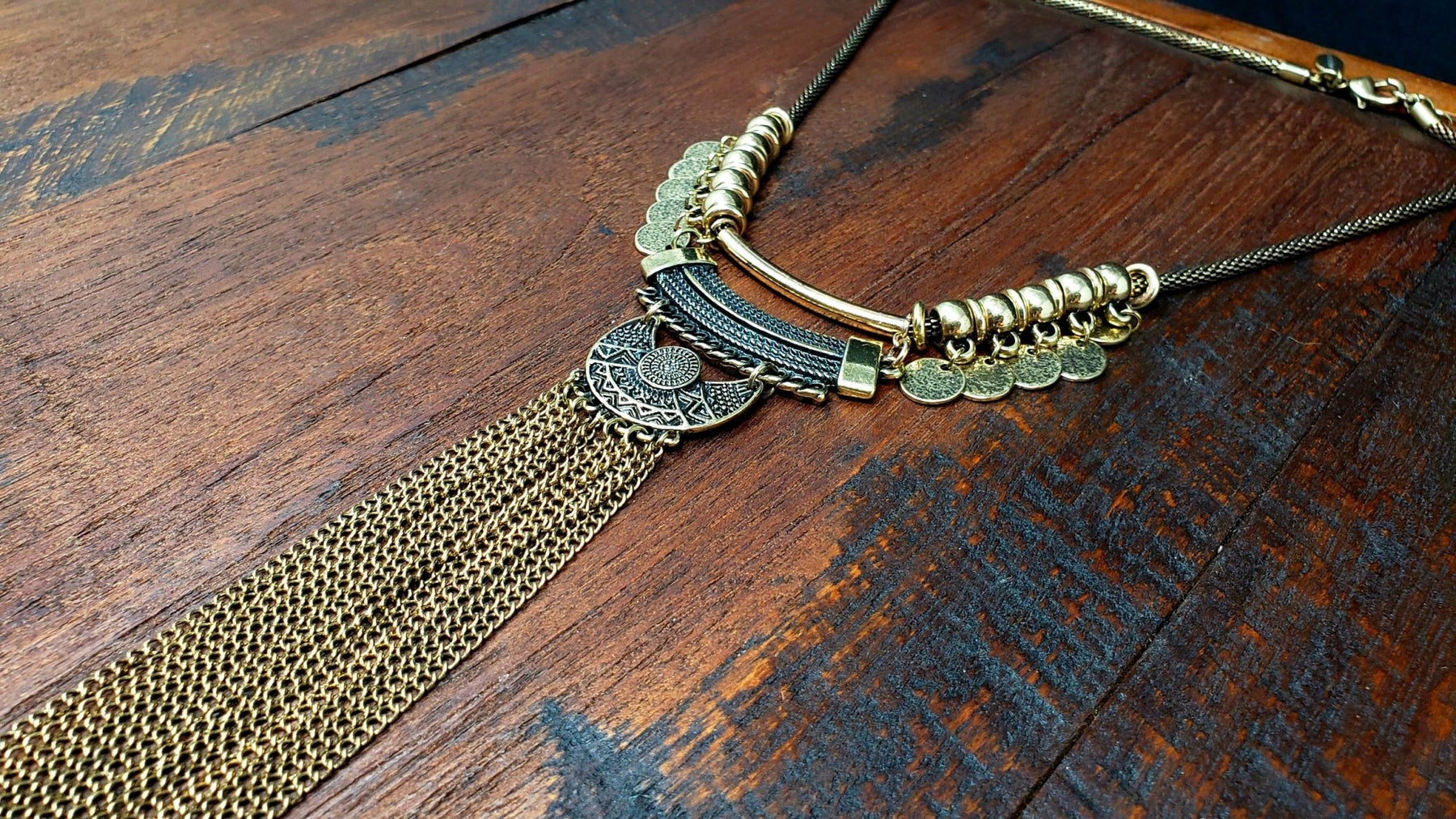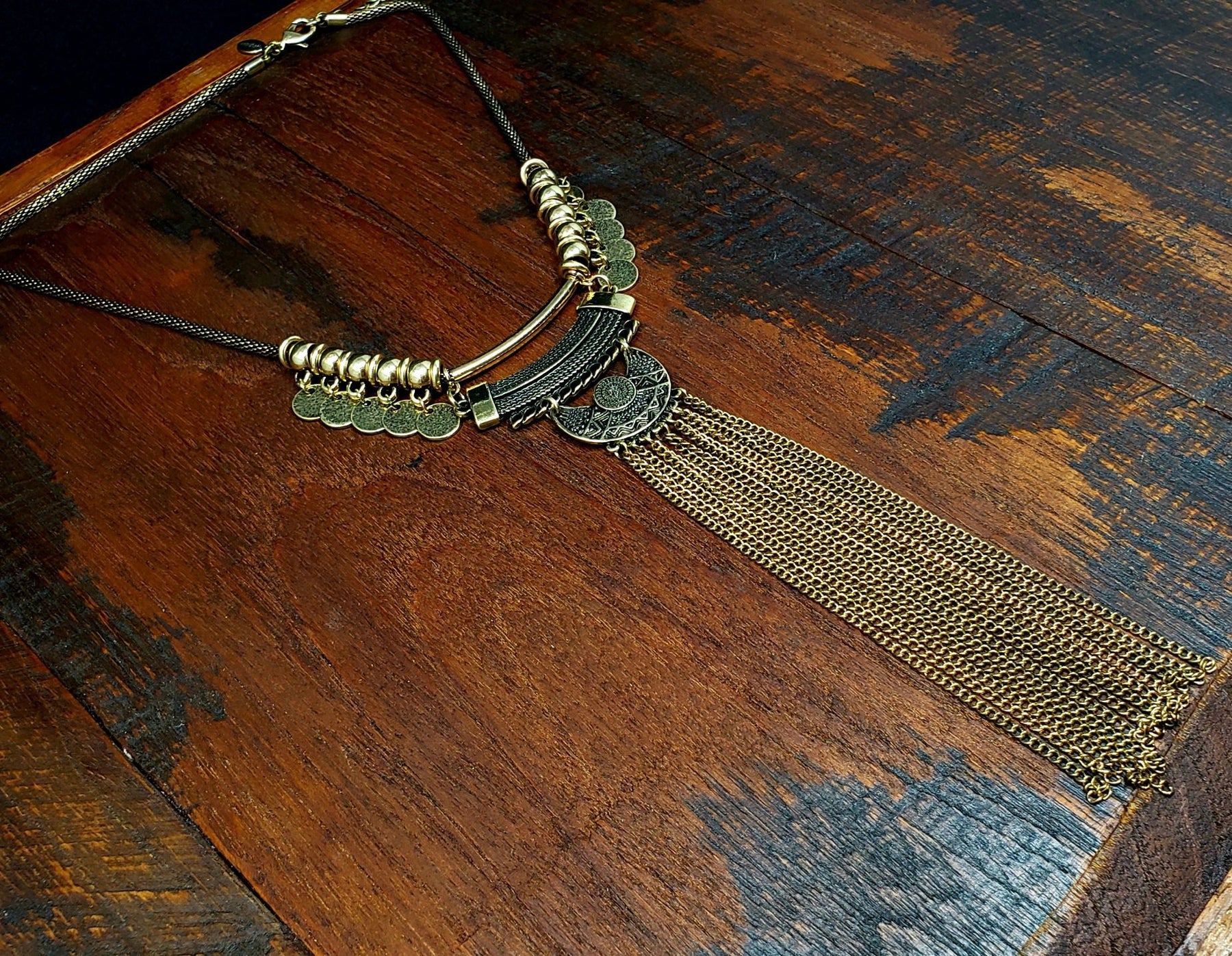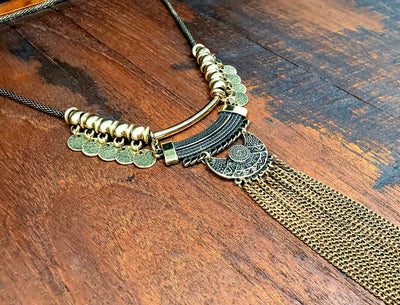 Long brass chain and intricate details makes this necklace an attention getter, perfect for that statement-making expressive free spirit.