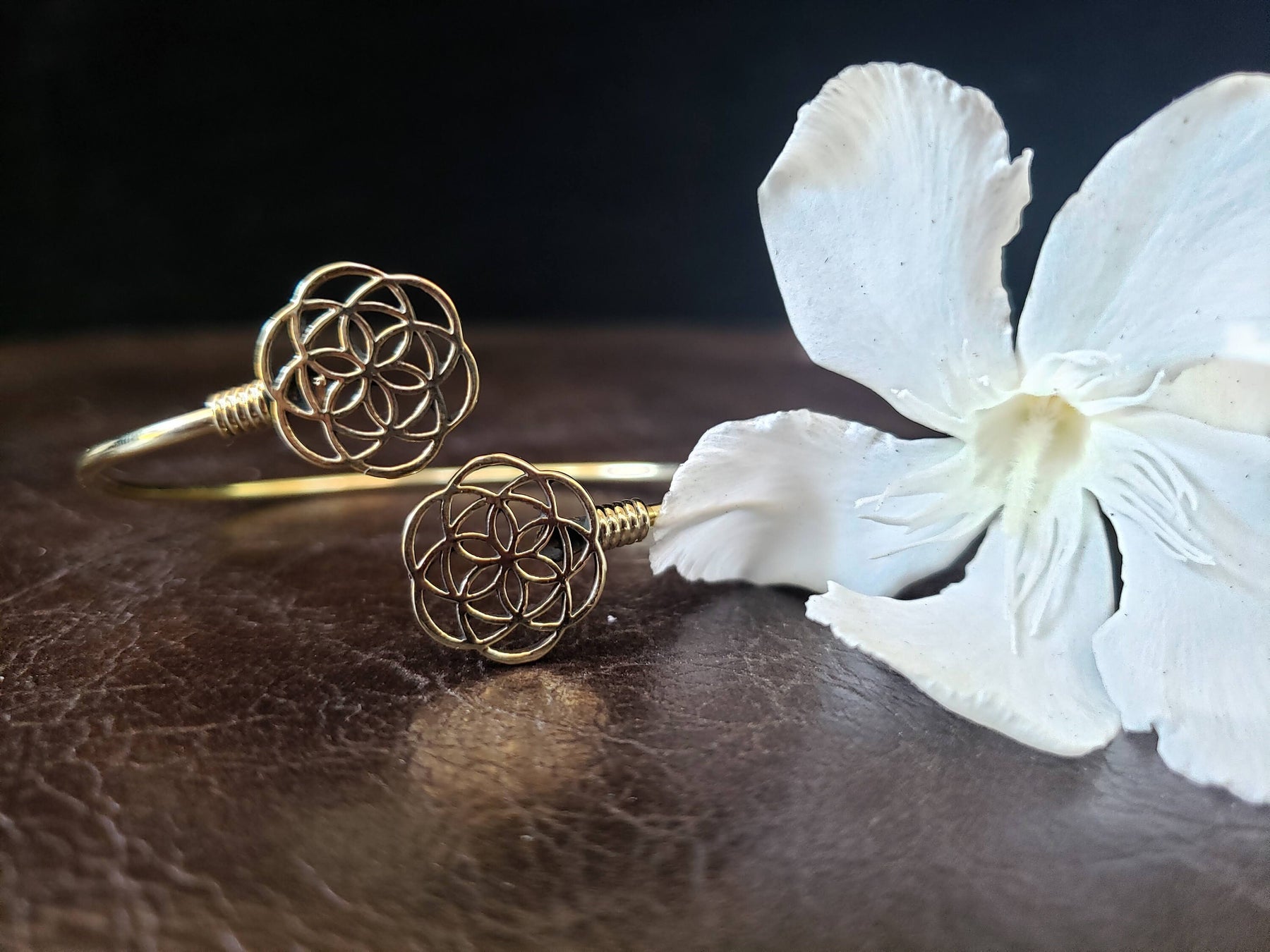 Gold Seed of Life Bracelet - Brass Gypsy Festival Boho Jewelry