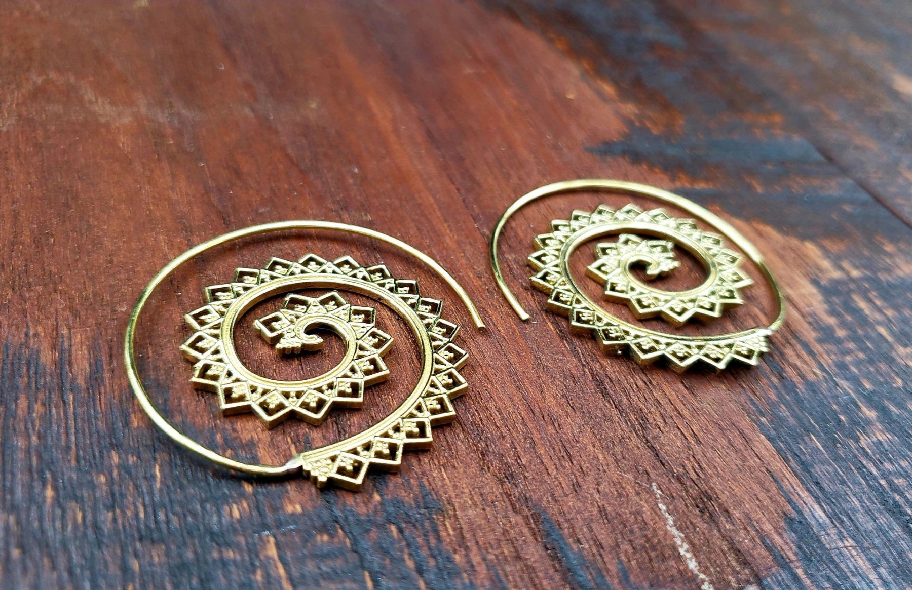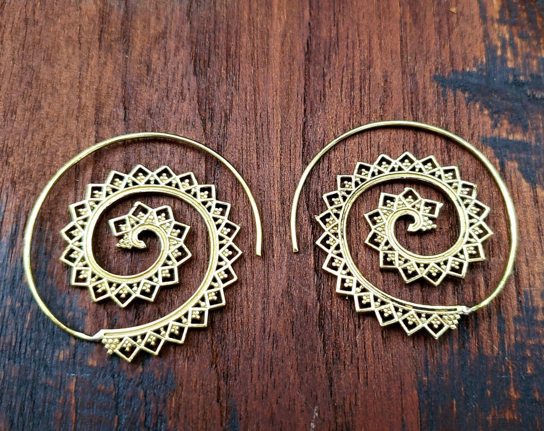 These spiral earrings loop right in a normal piercing. Hand crafted by talented Indian artists and collected by us while traveling in Rajasthan, India.