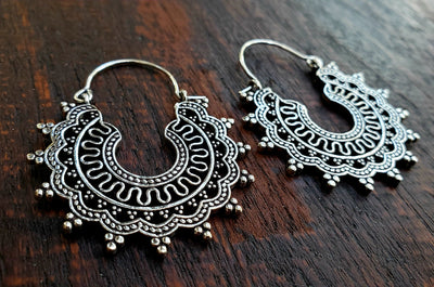 Traditional Intricate Tribal Silver Earrings