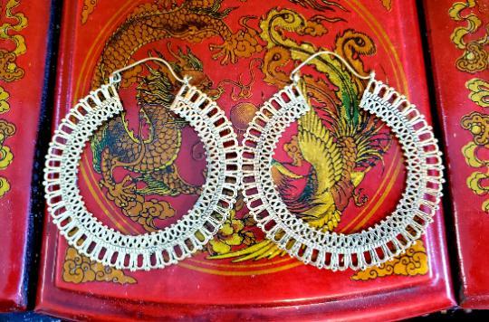These earrings rock. Measuring 3" across and featuring intricate designs along the edge, these are sure to get some attention!