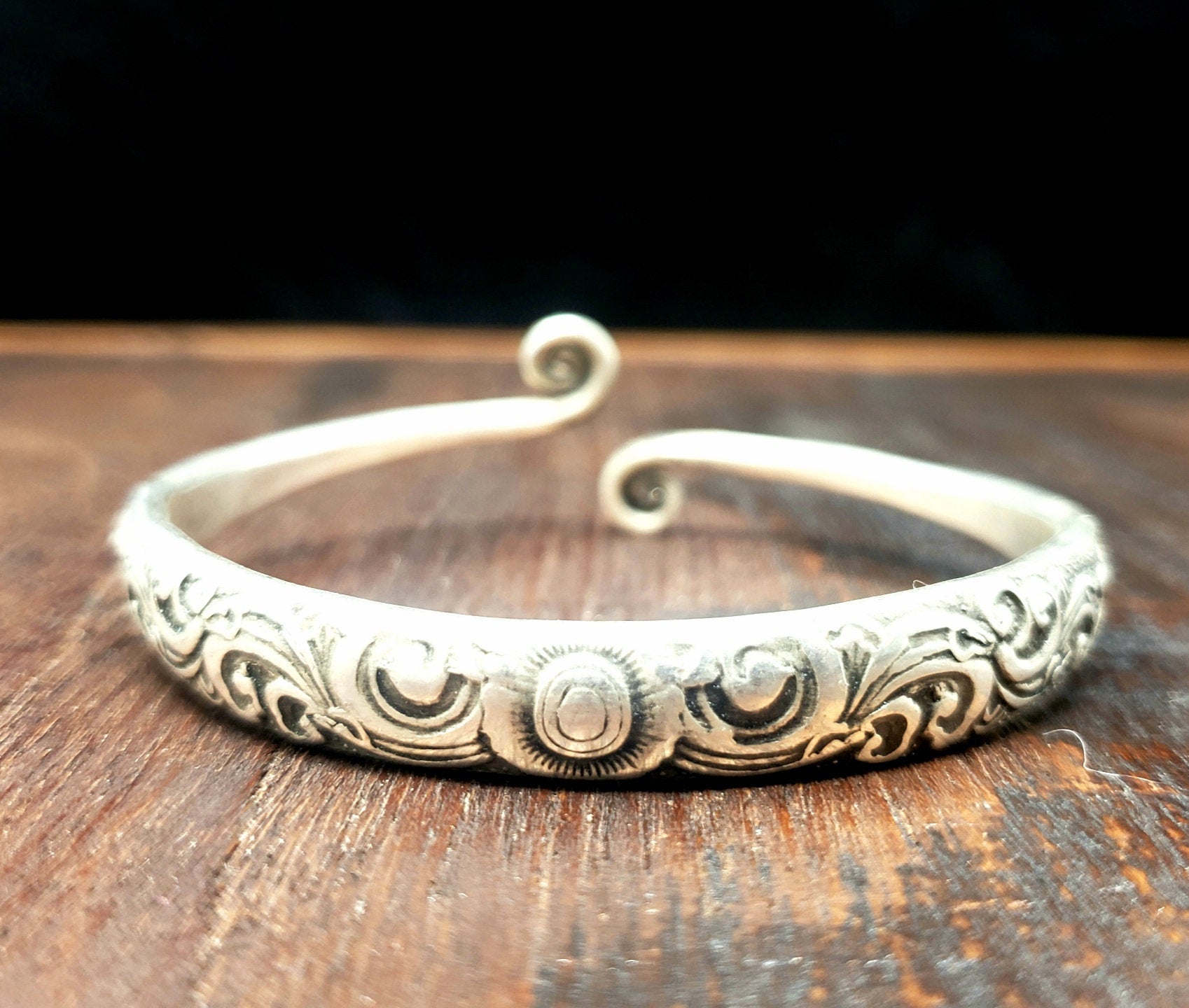 A traditional bracelet hand made by the Miao Hmong silversmiths in the mountains along the China and Laos border. Traditionally worn for good luck and protection.