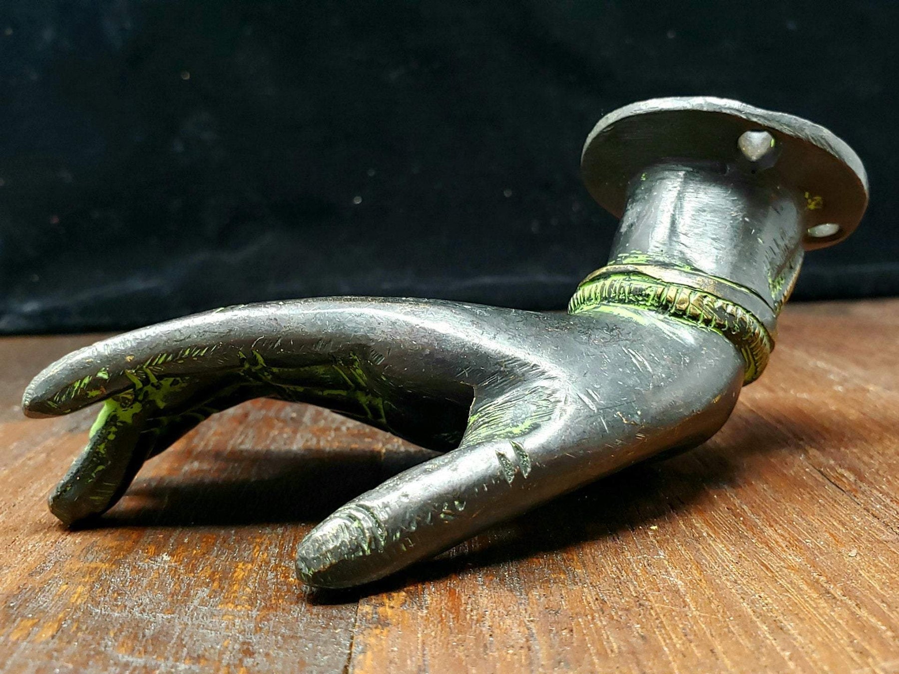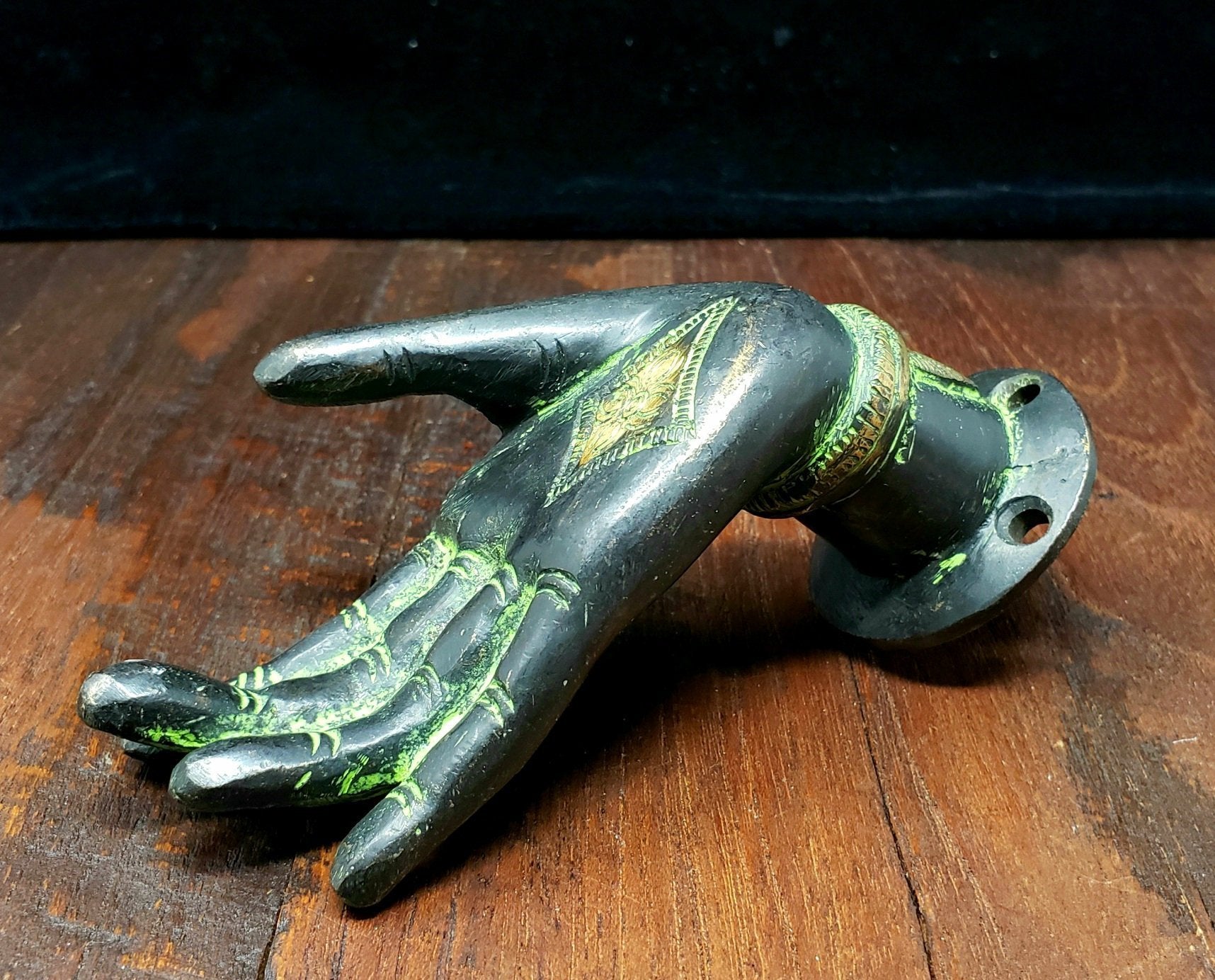 This is an original mudra hand handle that we collected from the ancient city of Kathmandu, Nepal. Perfect for a small door or cabinet or as a hanger for coats or hats. I have a similar one in my own home that I use to hold back window curtains.