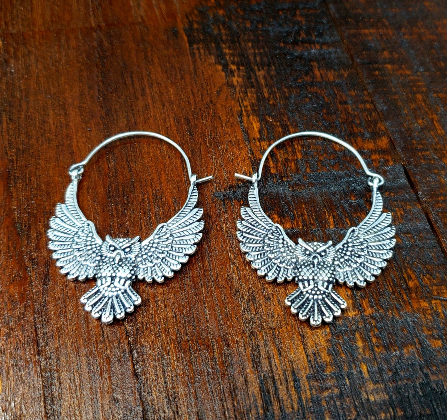 Mystical Silver Owl Earrings Bohemian Boho Jewelry