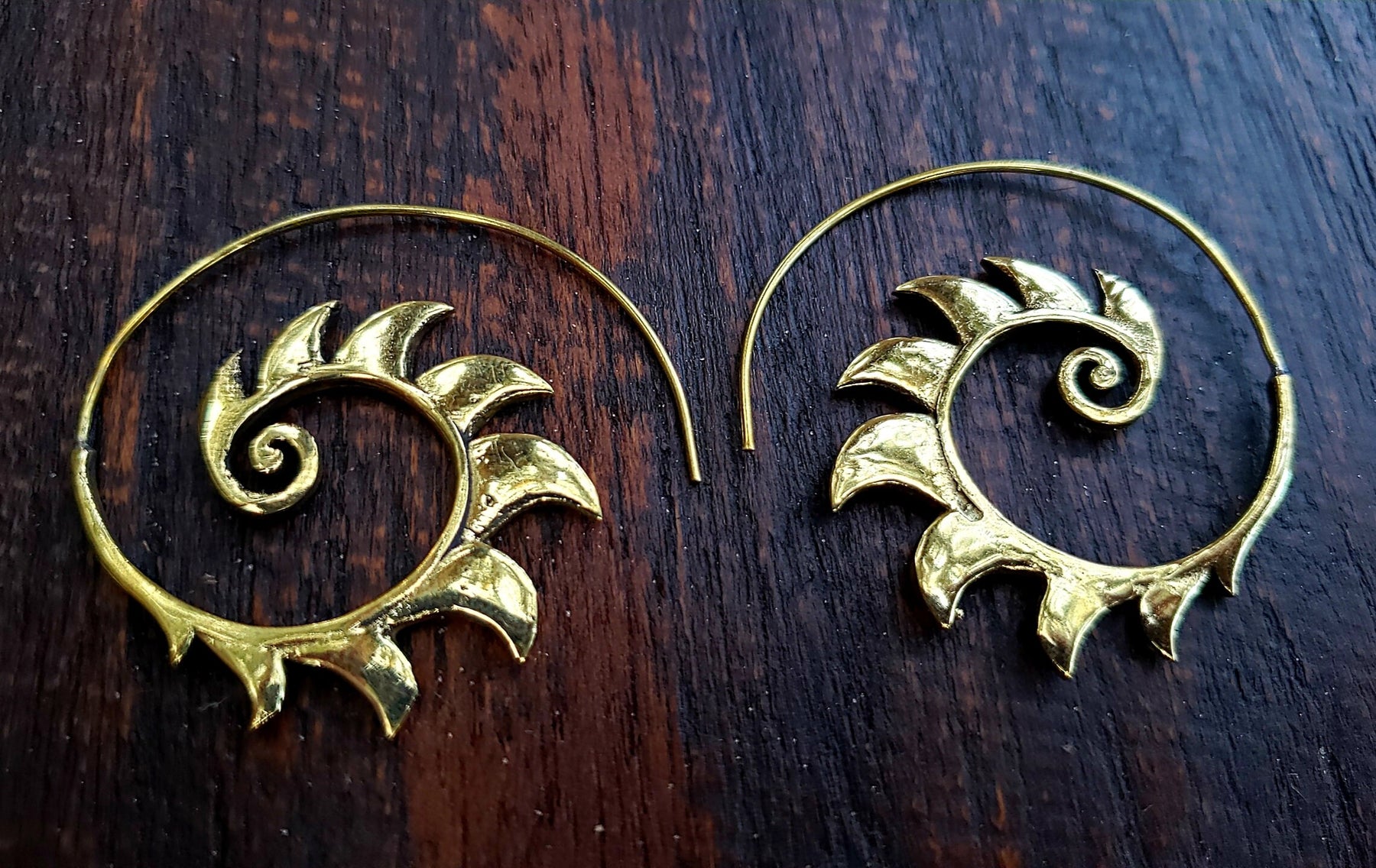 These are made with high quality jewelry brass. Thin and lightweight for daily use. They hang approximately one inch below the ear lobe.