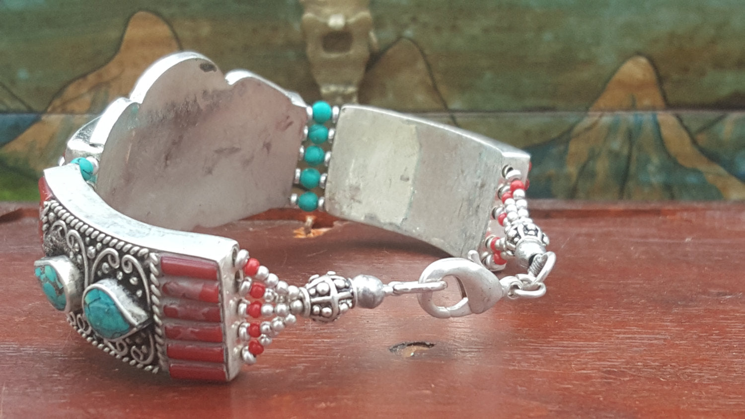 We collected this beautiful hand crafted bracelet while traveling through the Tibetan regions of the Nepali Himalayas.