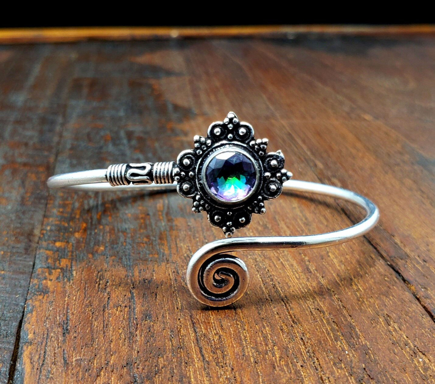 Silver Mystic Topaz Star Adjustable Bangle Bracelet