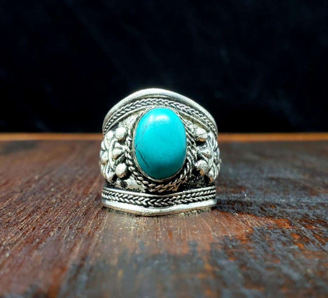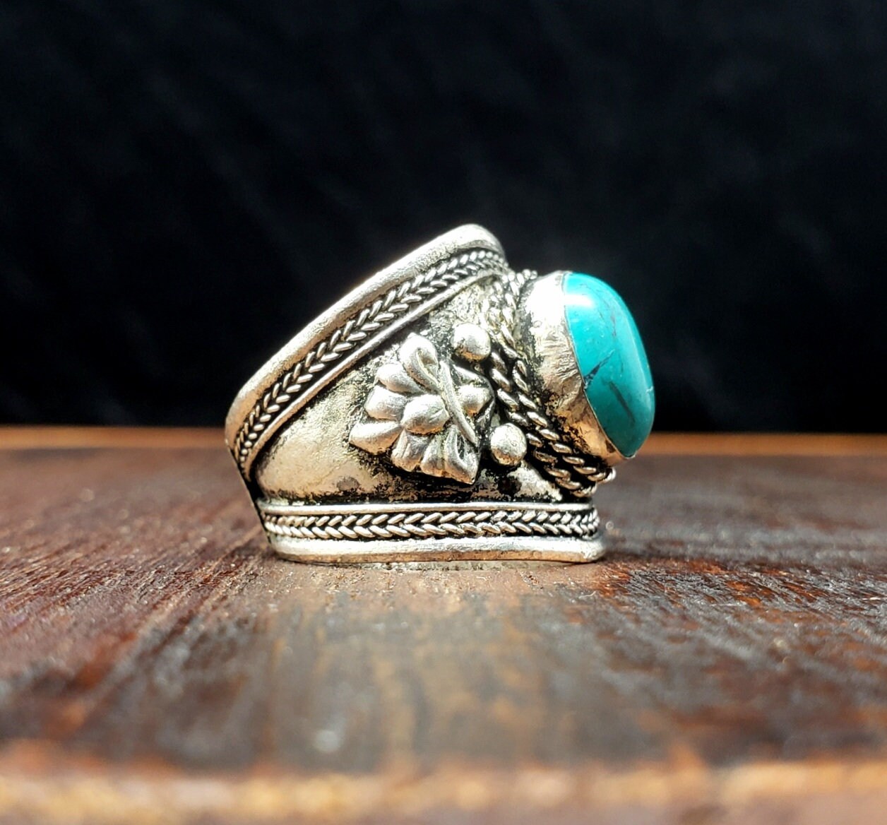 Awesome silver Tibetan ring with turquoise! The best part? It is totally adjustable.