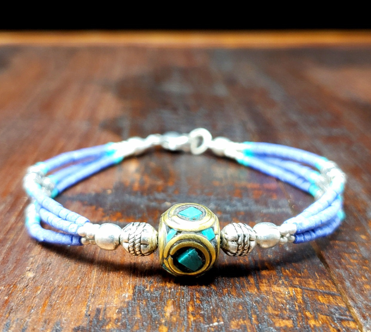 We collected this beautiful bracelet while traveling through the Tibetan regions of the Nepali Himalayas.