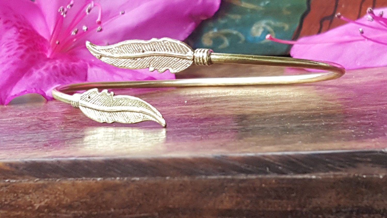 Simple Gold Feather Bangle Bracelet