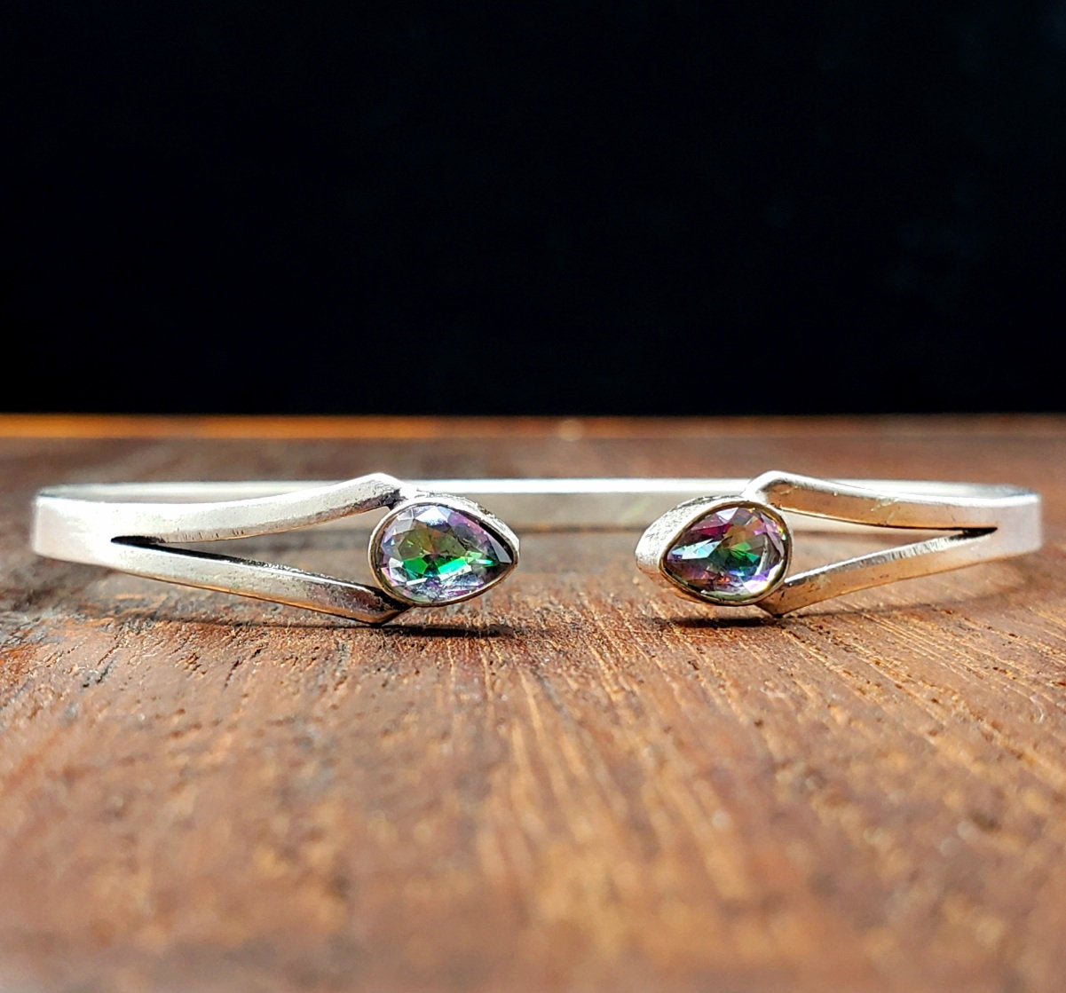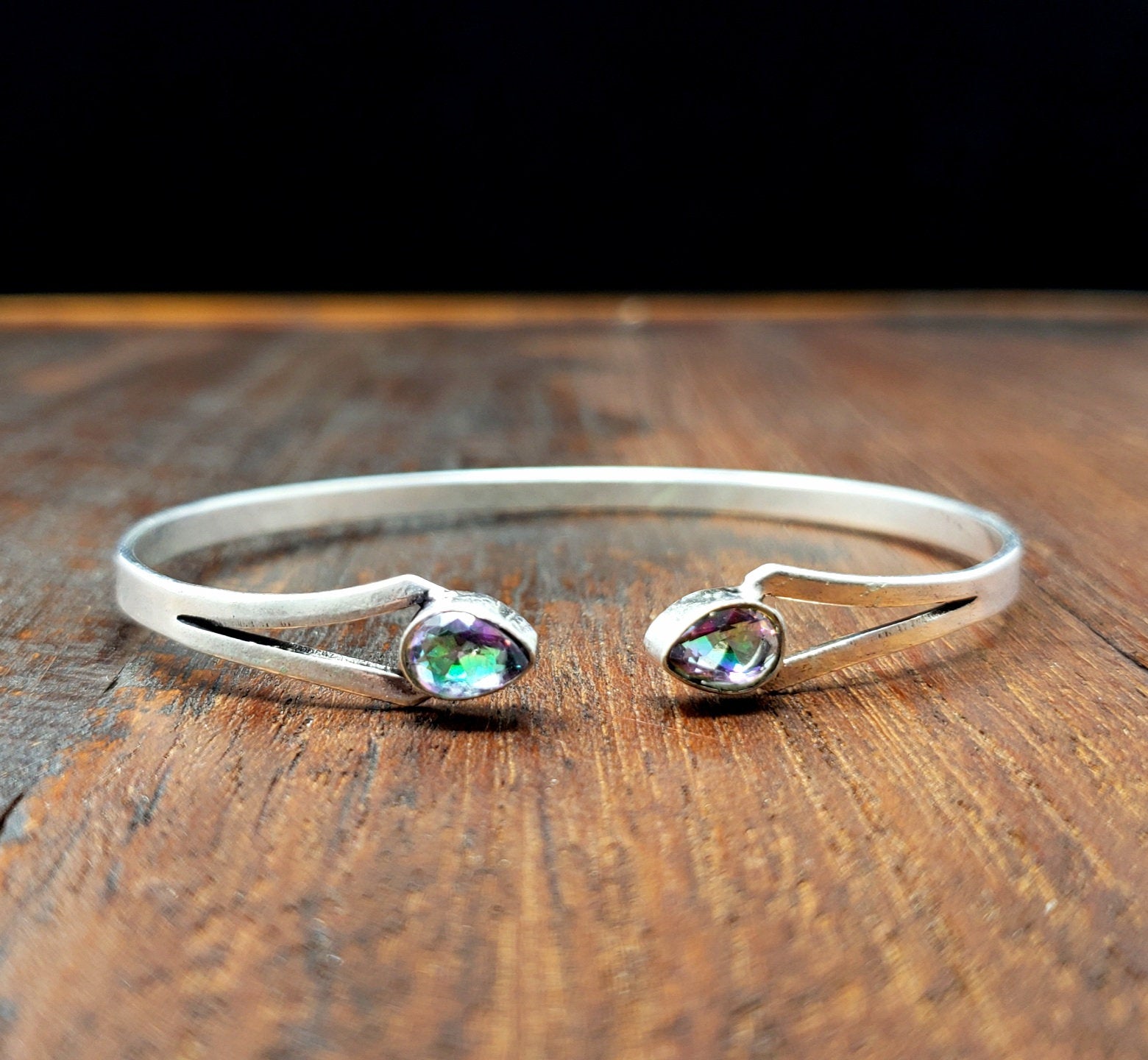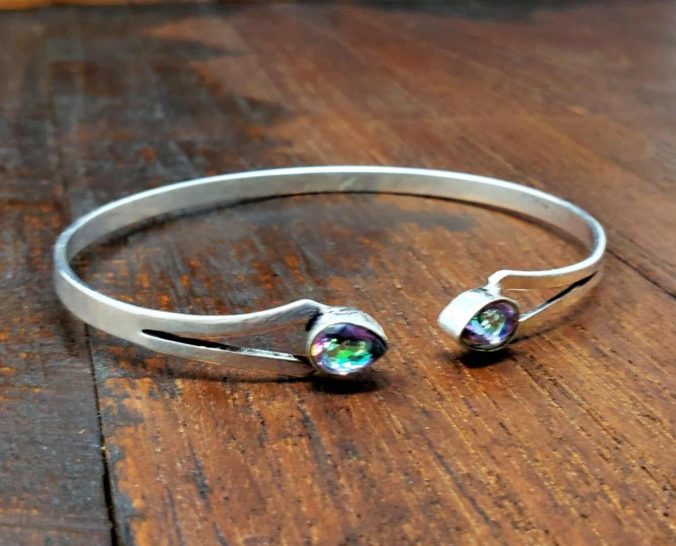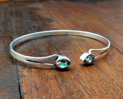 Beautiful and simple mystic topaz dagger bracelet with two pieces of mystic topaz.