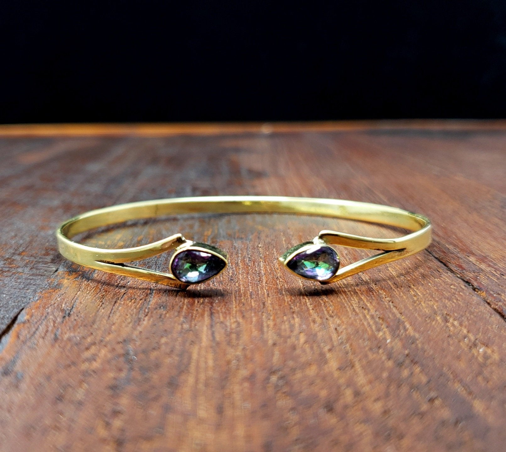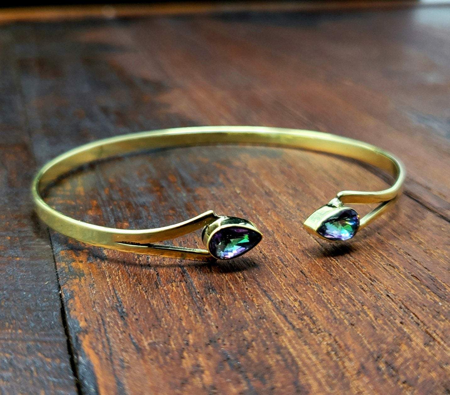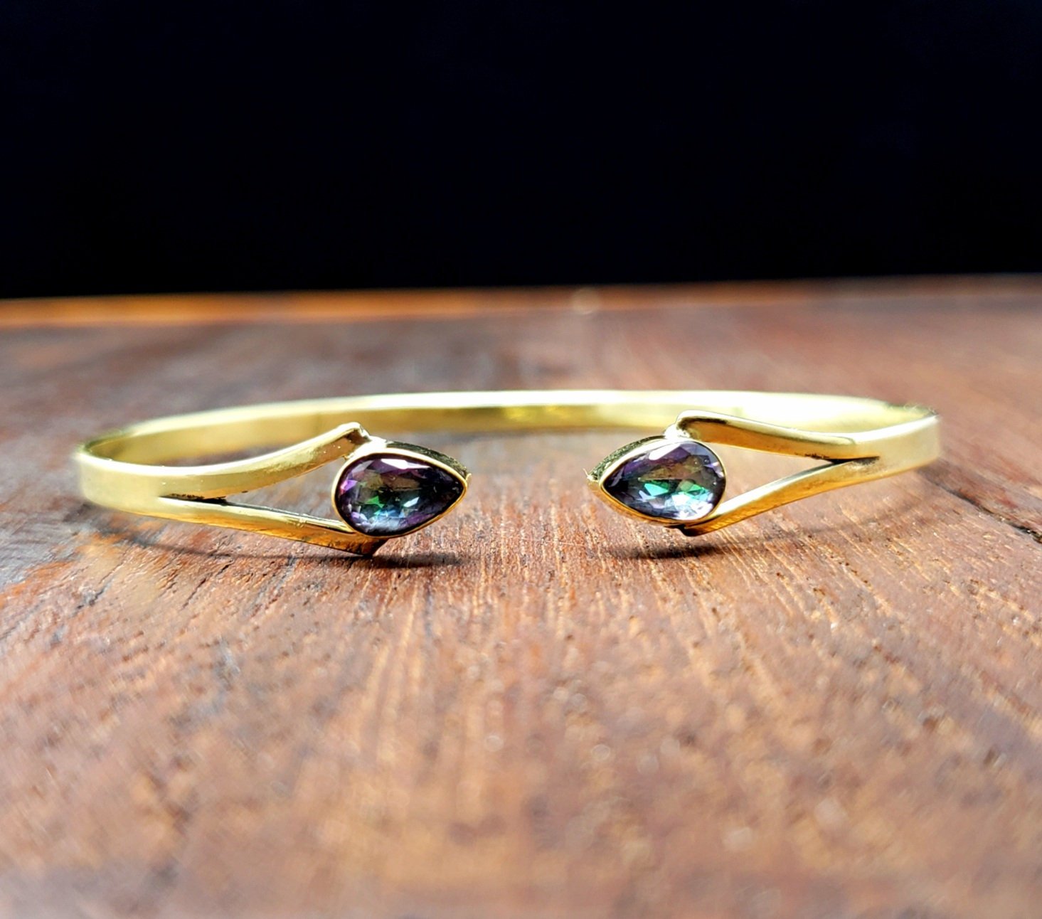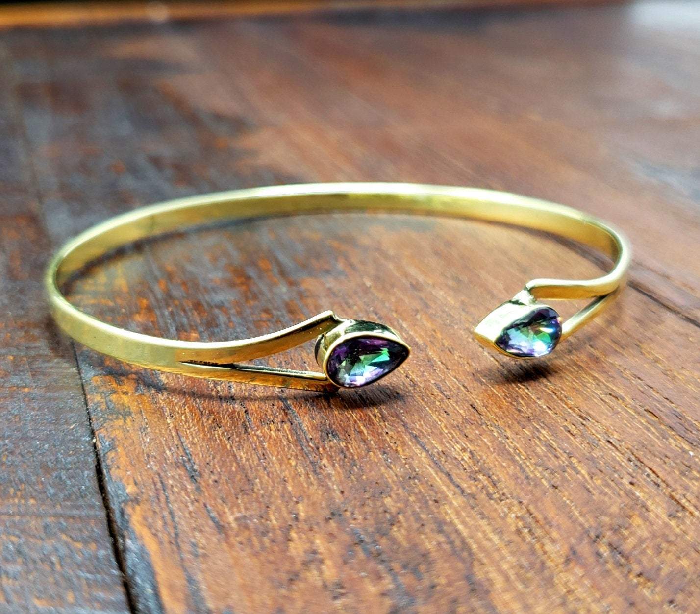 Beautiful and simple mystic topaz dagger bracelet with two pieces of mystic topaz.
