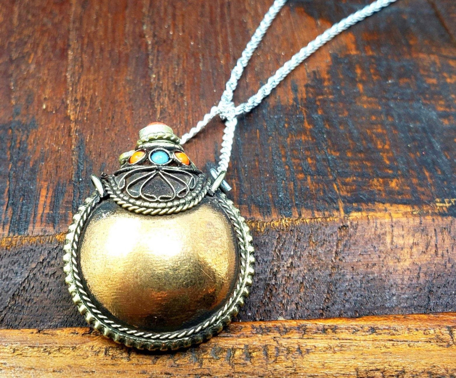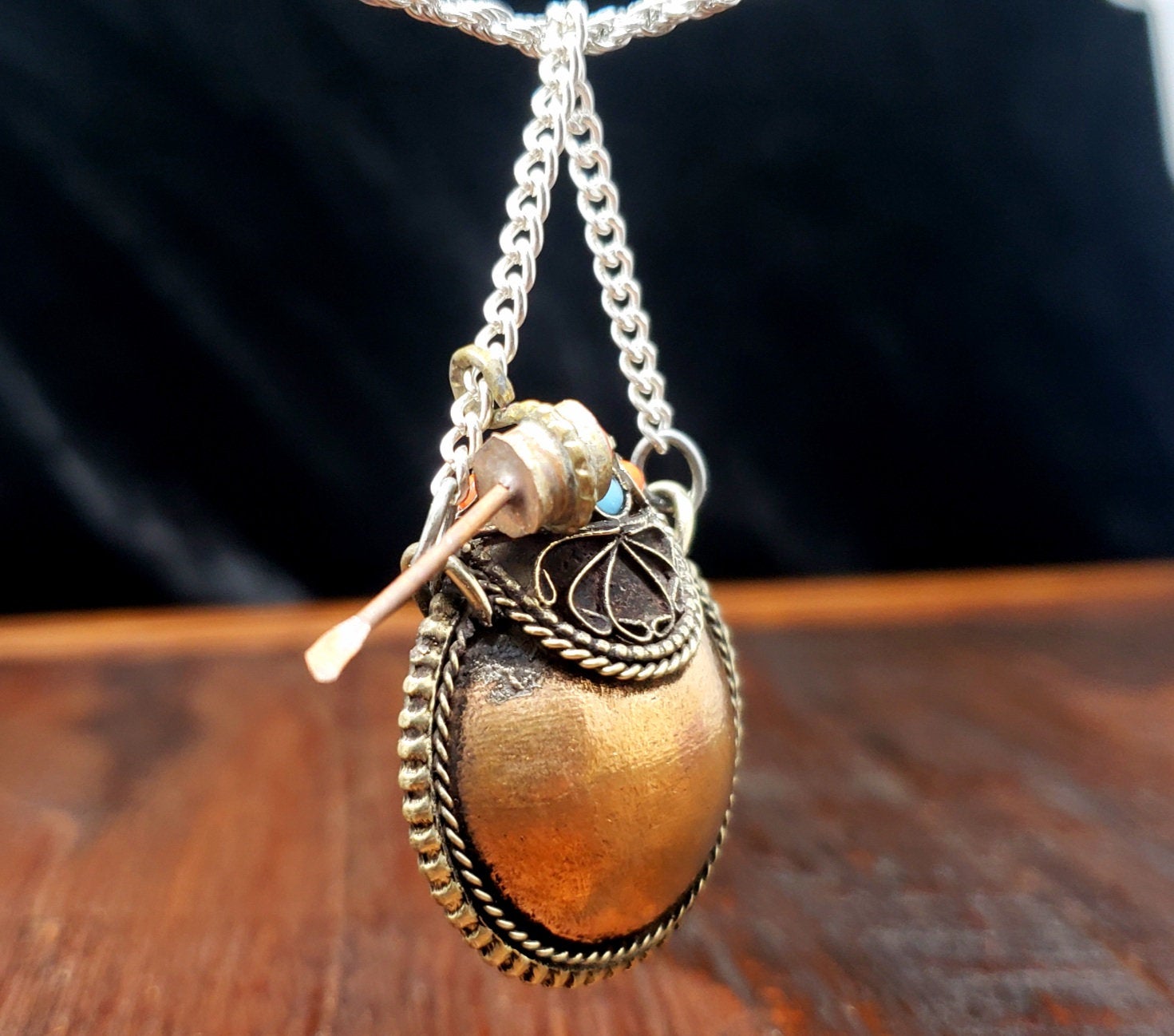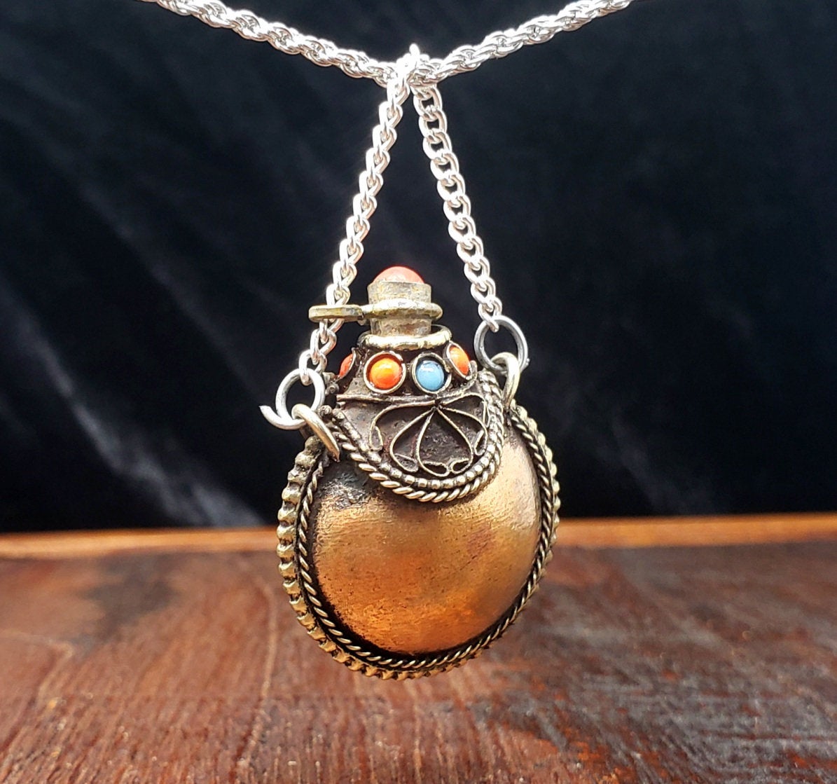Absolutely beautiful Tibetan copper perfume bottle pendant necklace.