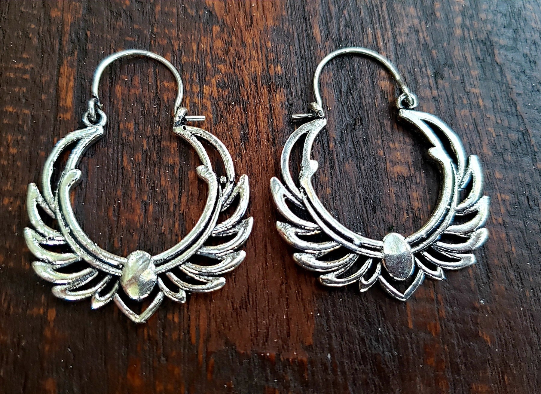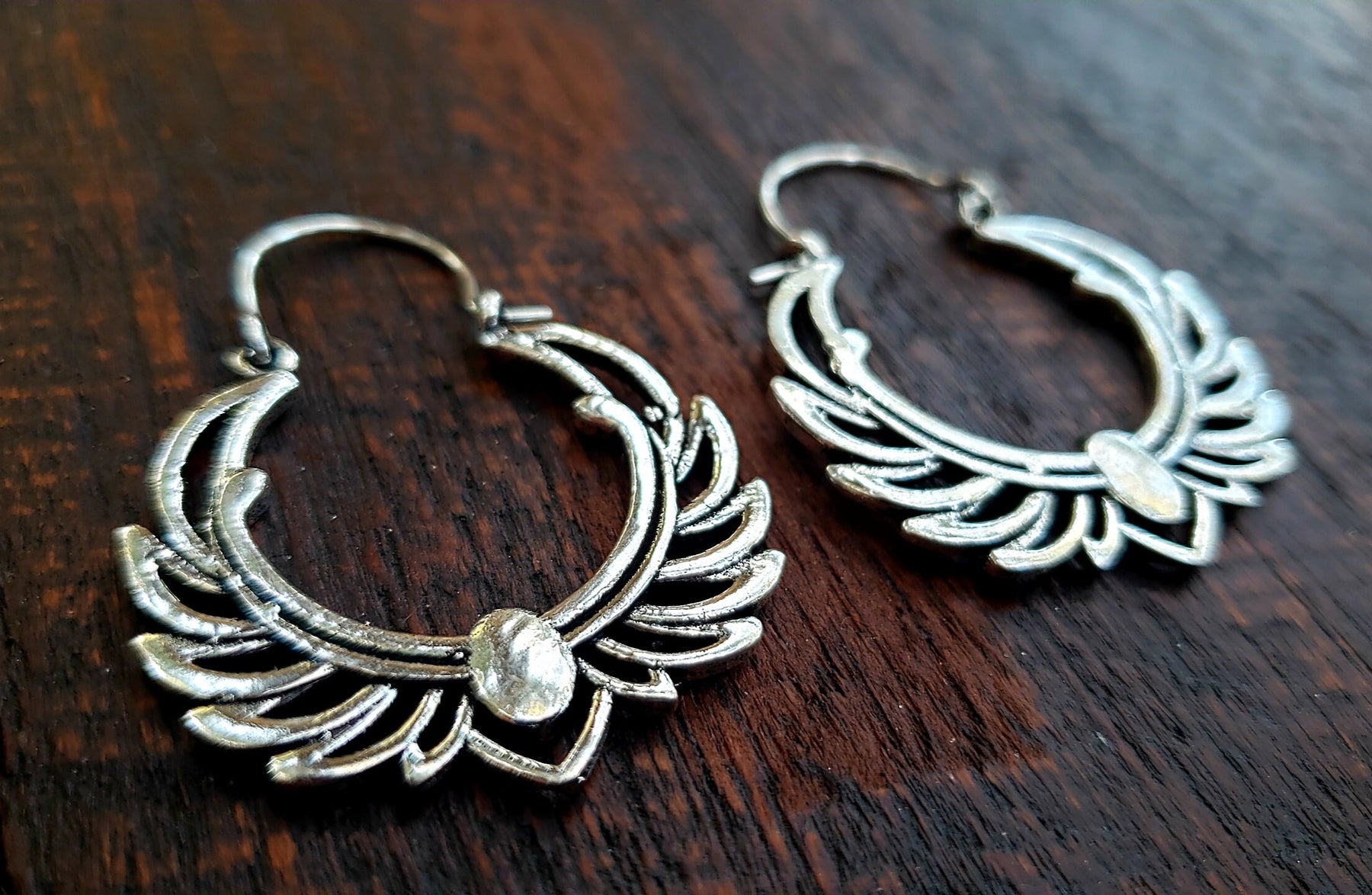 These are made with high quality jewelry brass with triple silver plating. Thin and lightweight for daily use. They hang approximately one inch below the ear lobe.